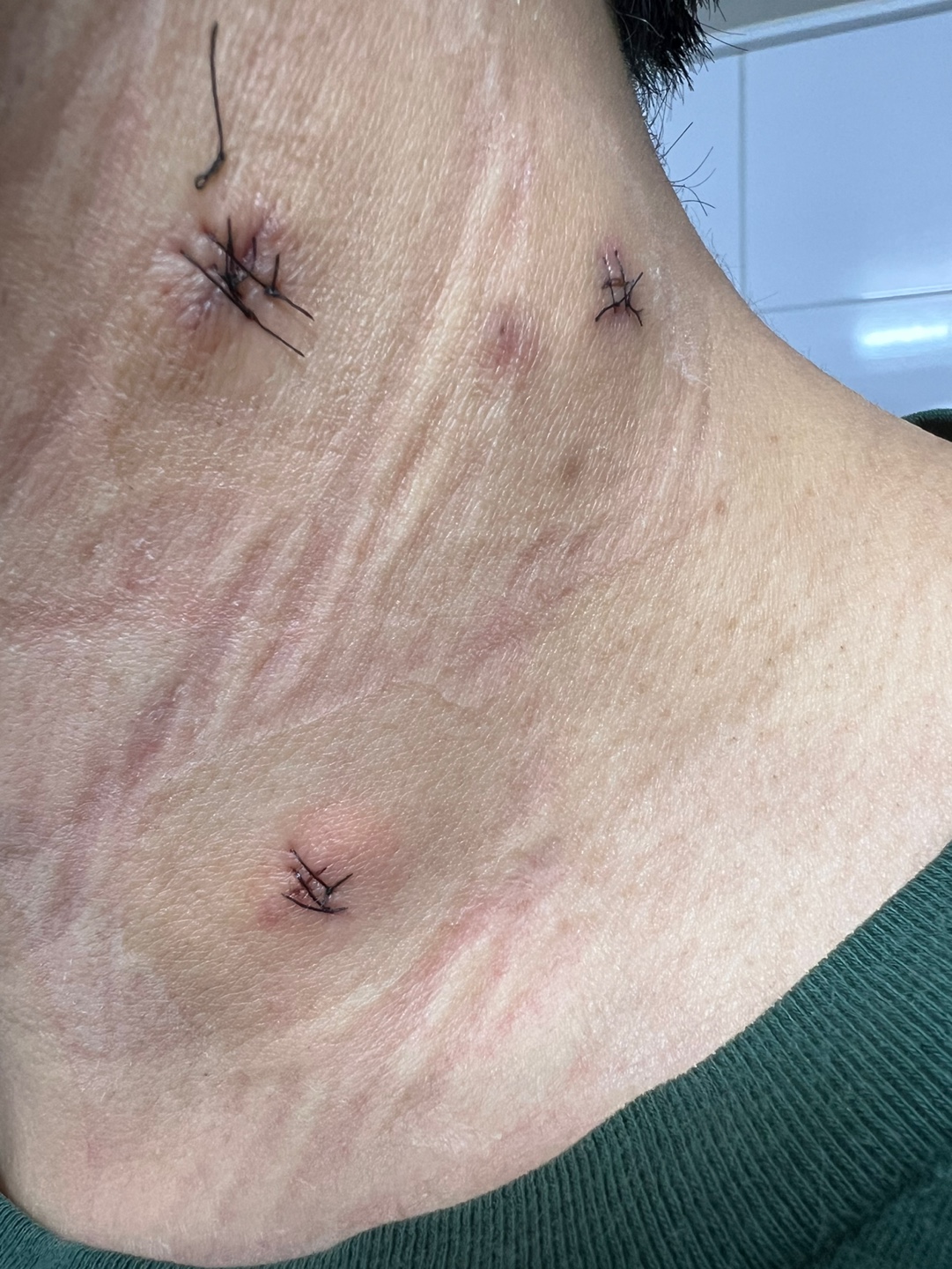 이틀에 한번 3회에 걸쳐 수술을 진행했고 현재 모든 부위 실밥제거를 완료하고