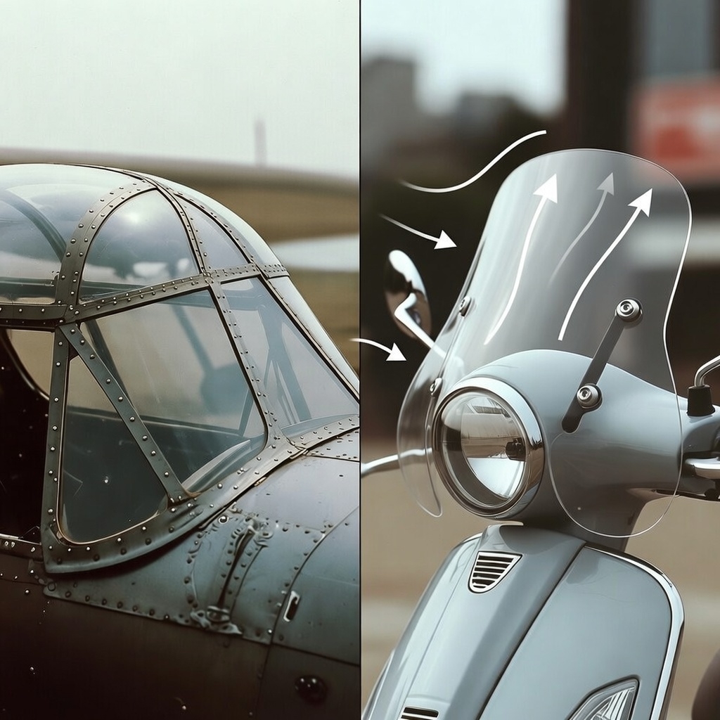 이 개념은 제2차 세계대전 이후 이륜차로 자연스럽게 이어졌고, 라이더들은 속도뿐 아니라 안락함과 지속적인 주행 가능성까지 함께 챙길 수 있게 되었습니다. 초기에는 무거운 강화유리가 사용되었지만, 현재는 가볍고 탄성이 좋은 고분자 소재가 주류를 이루고 있습니다.