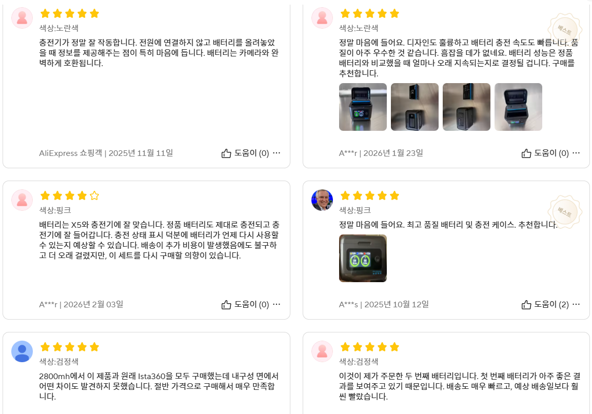 Insta360 X5를 사용하다 보면 처음에는 배터리 하나로도 충분하다고 느낄 수 있다. 짧은 테스트 촬영이나 실내 촬영 위주라면 큰 불편이 없다. 문제는 야외로 나가는 순간부터 시작된다.